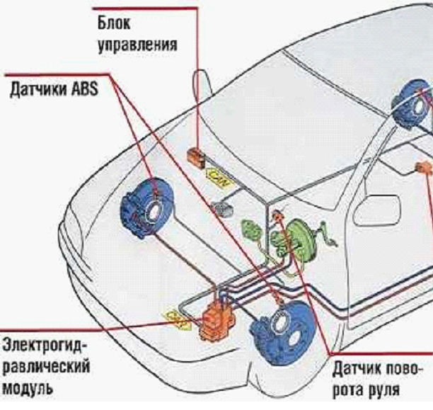 Кроме датчиков, система стабилизации автомобиля esp состоит из главного контролера и акселерометра, определяющего положение авто во время движения.