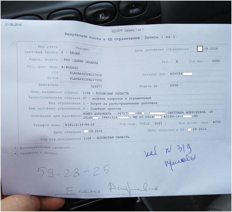 Программа проверит машину и на экране появится информация о запрете или отсутствии ограничений.