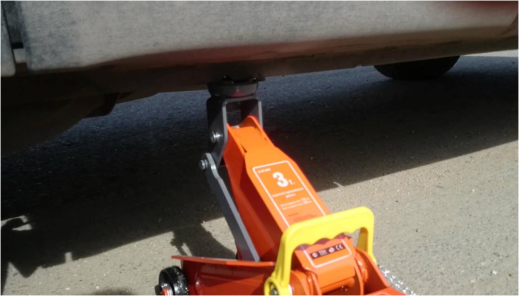 Если высота подъема гидравлическим домкратом будет слишком низкой, нельзя будет залезать под машину, чтобы чинить ее снизу. Поэтому желательно, чтобы она была достаточной. Размещается там, где у автомобиля задние колеса (домкрата достаточно для подъема машины).