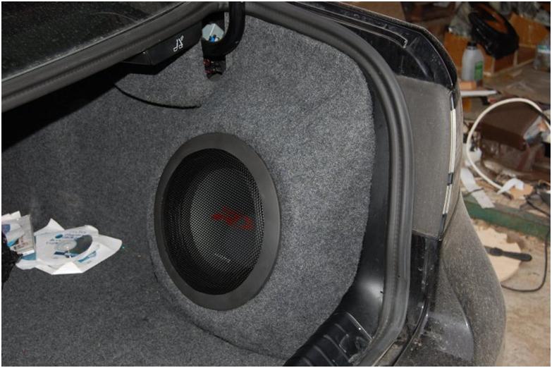 Чаще всего саб устанавливают в багажном отделении или крепят на спинку заднего сиденья.