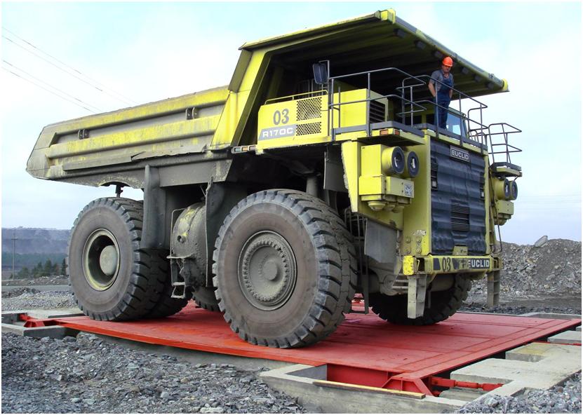 Для взвешивания специализированной техники, например, карьерных самосвалов, выпускаются большие весы для машин с предельно допустимой массой груза до 200 тонн. Конструкция таких весов оптимизирована для работы в тяжелых условиях под действием экстремальных осевых нагрузок.