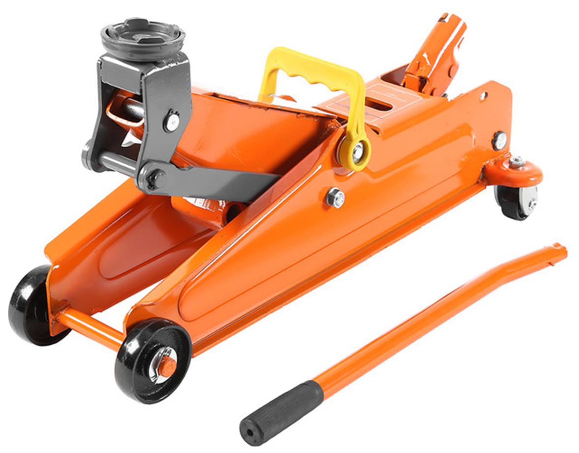 Подкатные домкраты похожи на тележку, которая перемещается на стальных колесиках. Конструкция состоит из подъемного механизма, пневматического насоса и поршня. Благодаря этому аппаратура может работать с грузом огромного веса. Данный механизм имеет и минусы, среди которых можно выделить следующее: