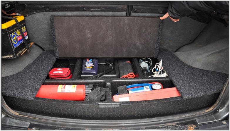 - аксессуары в багажник автомобиля раскладывайте по отсекам, не стоит их набрасывать в одну кучу;