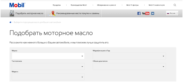 Подбор масла Мобил легко осуществить на официальном сайте производителя, который поддерживает специализированный сервис.