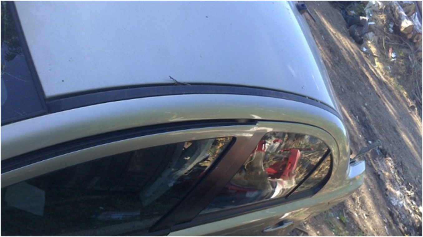 - Приложить молдинг к кузову и прижать его, зафиксировав малярной лентой.