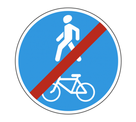 Знаки «пешеходная и велосипедная («велопешеходная») дорожка с совмещённым движением) (4.5.2), а также «конец пешеходной и велосипедной дорожки с совмещённым движением» (4.5.3) регулируют движение пешеходов и велосипедистов на общей для обеих категорий дорожке.