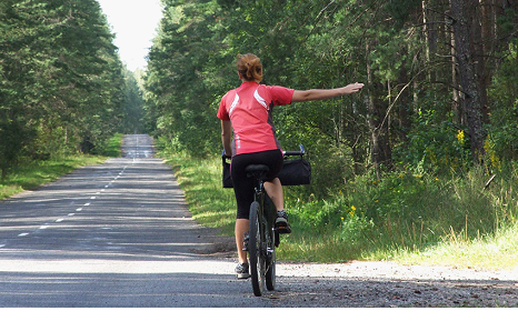 - при повороте либо развороте – вытянутая в сторону рука с той стороны, в которую собирается поворачивать велосипедист;