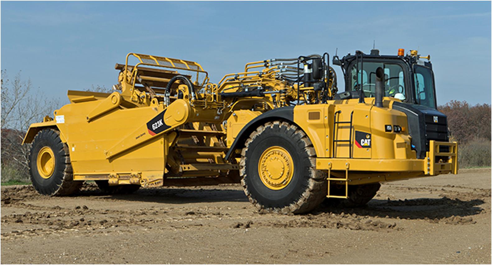 У колесного трактора – скрепера тоже два рычага тормоза. Дело в том, что у этой машины два двигателя, поэтому тормоза рассчитаны на них. Педали находятся рядом – одна для одного мотора, вторая – для другого.