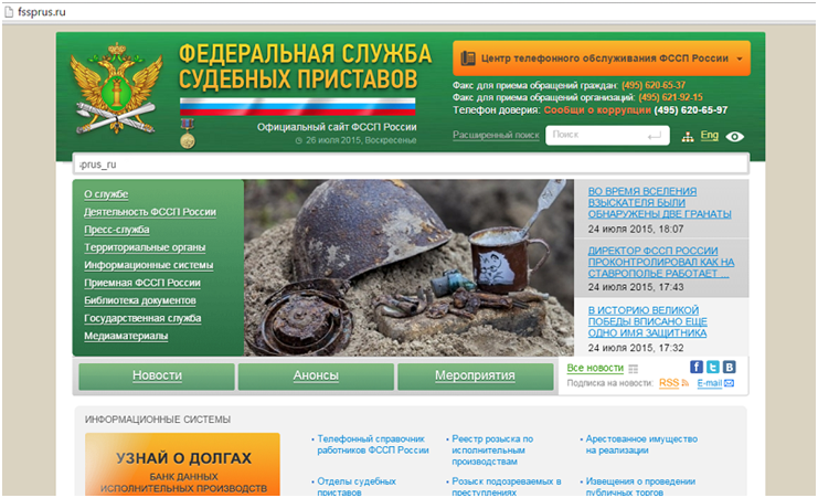 Следующий сайт является главным по проверке своих кредитов, долгов, алиментов, и, естественно, штрафов: . Сайт Службы приставов поможет вам регулярно проверять все свои задолженности, чтобы избежать каких-либо проблем с просроченными суммами. Вам достаточно посетить сайт, ввести, то, что вас просят, и выбрать свой город. Сайт сам подскажет, что вам нужно делать. Если вас не нашли в базе – у вас не имеется каких-либо задолженностей. На сайте, кстати, есть и оплата штрафов ГИБДД без комиссии через интернет, которой также несложно воспользоваться.
