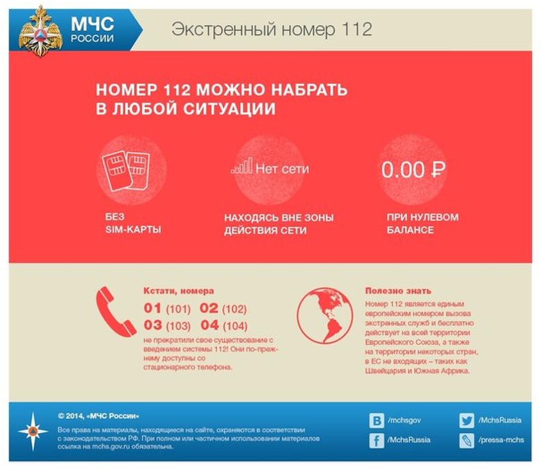 Следует помнить, что звонок с сотового по экстренным номерам совершается абсолютно бесплатно, вызов идет даже при нулевом балансе и отсутствии SIM- карты.