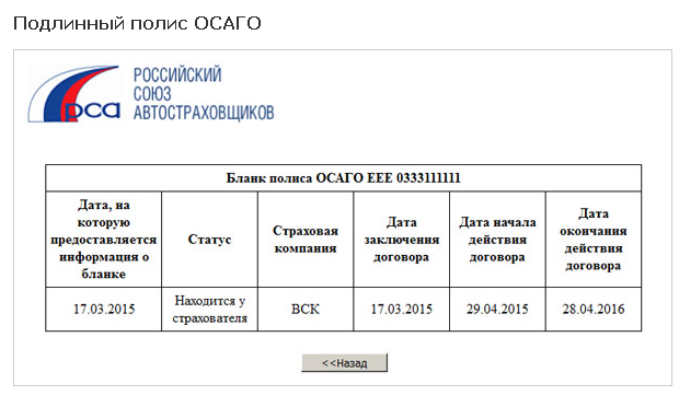 Если документ подлинный, то в специальном поле появиться идентифицирующая его информация. Если полис не выдавался или утратил свою силу ввиду просроченности, то система выдаст соответствующую информацию.