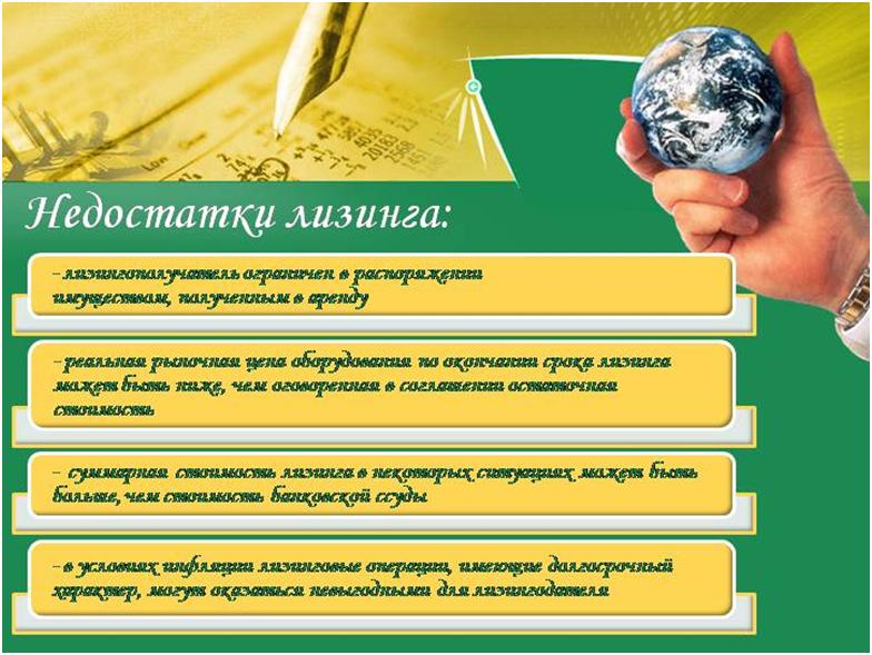 - небольшой выбор лизинговых компаний сужает возможности лизингопотребителя;