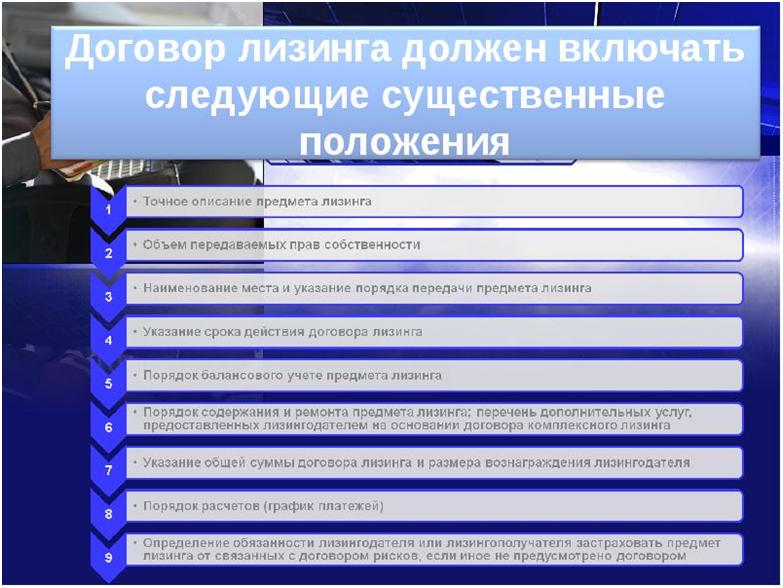 - невозможность сдачи машину в аренду без согласия лизинговой компании.