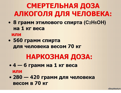 Следует учитывать, что летальный исход наступает и при меньшем уровне содержания эттанола в крови. Все зависит от организма человека, переносимости этанола, наличия заболеваний, скорости выведения.