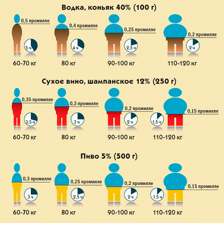 Если вы хотите узнать: 05 промилле сколько это алкоголя, следует произвести расчеты и взять во внимание ваш вес. В среднем это 150-200 мл вина или 40 гр. водки.