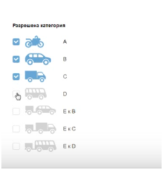 - Выбрать категорию транспортного средства, в соответствии с которой был проведён медицинский осмотр.