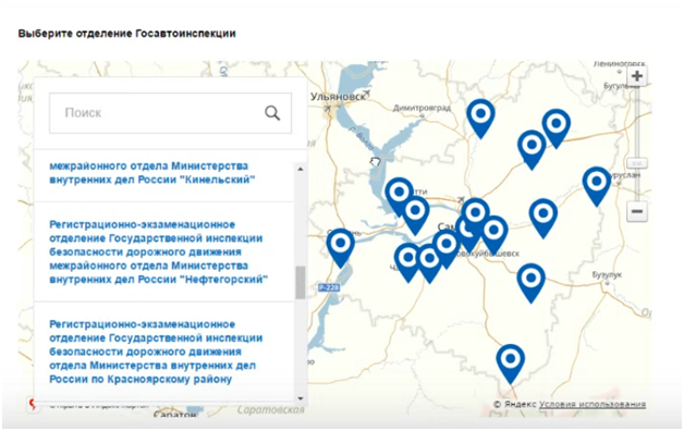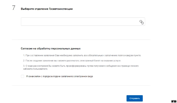 - Указать отделение Государственной автомобильной инспекции, в котором планируется получение документа.
