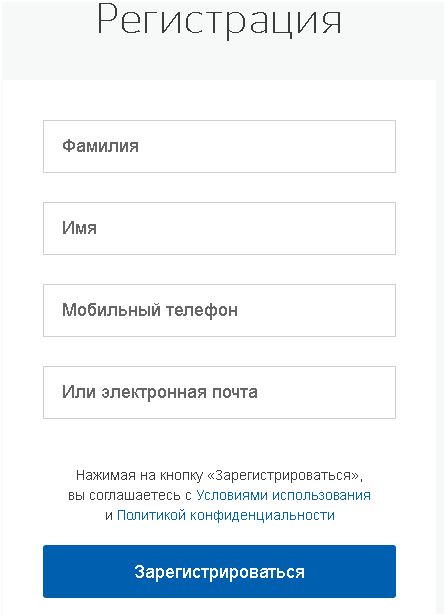 - Новым пользователям необходимо пройти регистрационные действия, введя в специальные поля идентифицирующие сведения.