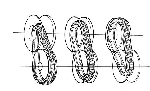 Каждый шкив имеет две половинки конусовидной формы. В процессе работы они сближаются и удаляются, меняя таким способом радиус. Если ведомый шкив раздвинуть, то ремень будет крутиться по маленькому радиусу, передаточное число уменьшится. Если оба шкива находятся в одинаковом положении, то вращение передается напрямую.