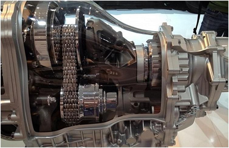 Здесь вариаторная КПП имеет оригинальный вид. Вместо ремня используют сложную многозвенную цепь. Что касается главного отличия между устройством на Ауди и другом автомобиле, то это наличие тянущего эффекта и передача крутящего момента до 350 Нм.