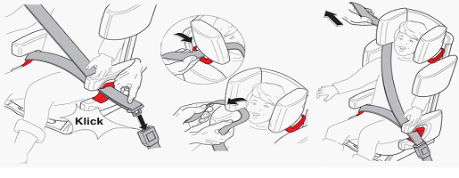 Кресло идёт в комплекте с вкладкой для новорожденных, нагрудными подушками и мягким креплением. Присутствуют боковые защитные крепления. Спинка может поддерживаться в трёх положениях. Пятиточечный ремень безопасности, совместим со стандартным трёхточечным.