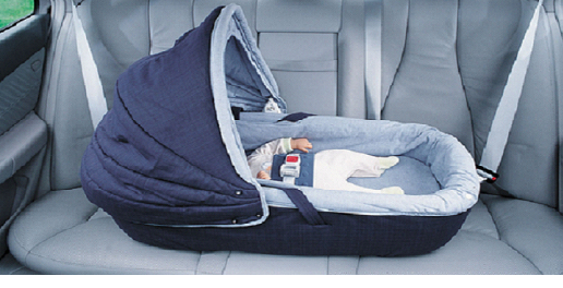 Автокресло группы 0 напоминает люльку, прикрепляется при помощи двух ремней перпендикулярно движению авто.
