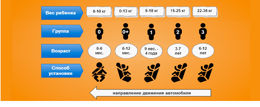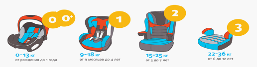 группа 0+: возраст от рождения до 15 месяцев, вес – до 13 кг;