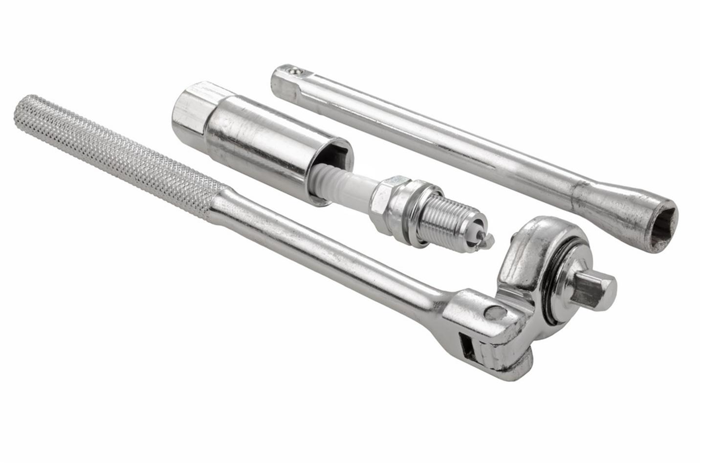 На рисунке изображен необходимый инструмент для выполнения этой операции, важно подобрать удобный инструмент, что называется « по руке», чтобы не прикладывать излишних усилий при демонтаже и установке на место свечей зажигания. В противном случае можно повредить резьбу посадочного места в блоке цилиндров двигателя и тогда потребуется серьезный ремонт.
