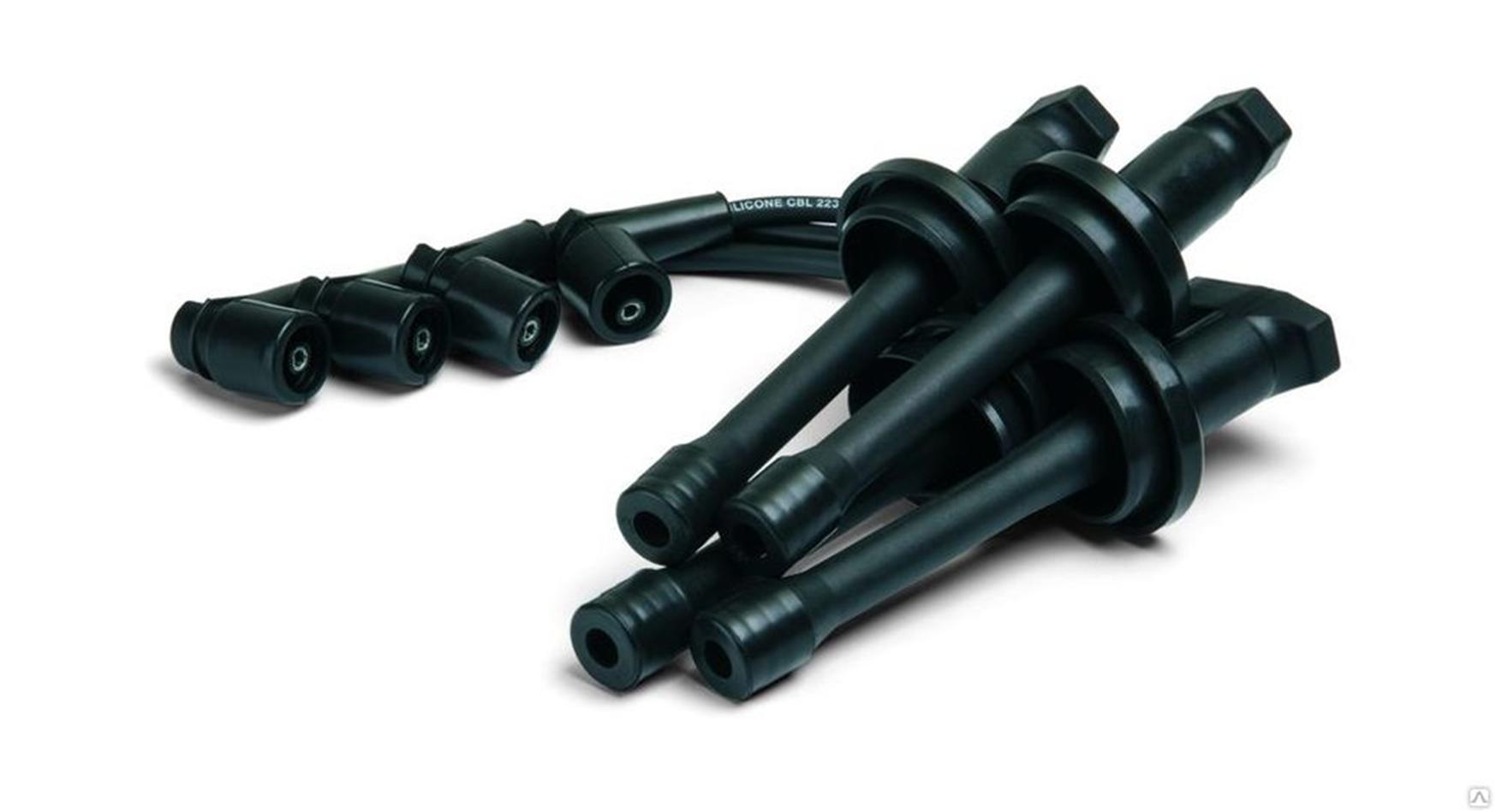 Многие водители называют такие провода «свечными». Уже из названия понятно, что они способны выдерживать высокое напряжения, которое может доходить до 50 кВ. Устроены так же, как и обычная проводка. Состоят из медной жилы, двух колпачков и изоляции из резины и силикона.