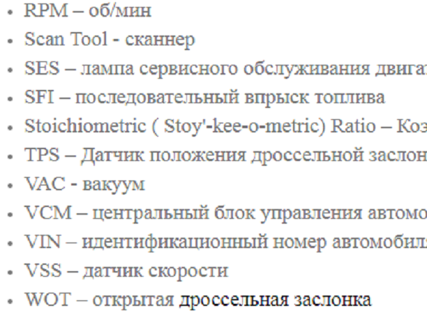 Коды ошибок расшифровка на русском языке холостого хода, трансмиссии и ЭБУ