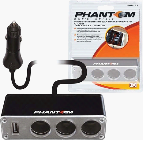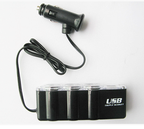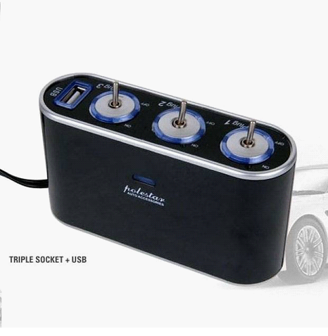 Разветвитель прикуривателя на 3 гнезда с usb сзади устройства рассчитан на среднюю нагрузку в 10 Ампер. Каждое гнездо имеет крышку для закрывания. Кроме того, одна розетка выполнена из керамики – ее можно использовать для инвентора. Изделие оснащено толстым шнуром. Стоимость от 500 руб.