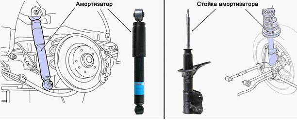 Схематично: в чем принципиальное отличие стоек от амортизаторов?