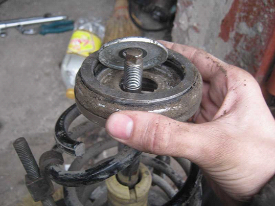 Затем необходимо определить, возможен ли вообще ремонт, либо требуется замена. Здесь всё зависит от конструкции узла. Если корпус монолитный – увы, здесь возможна только замена. Варианты типа «распилить болгаркой корпус, долить жидкости и заварить» следует сразу же забыть: такой узел мало того, что долго не проработает, так ещё и сломается в самый непредсказуемый момент. Но если там, где шток входит в корпус, стоит стопор или гайка, то разобрать стойку амортизатора вполне возможно.