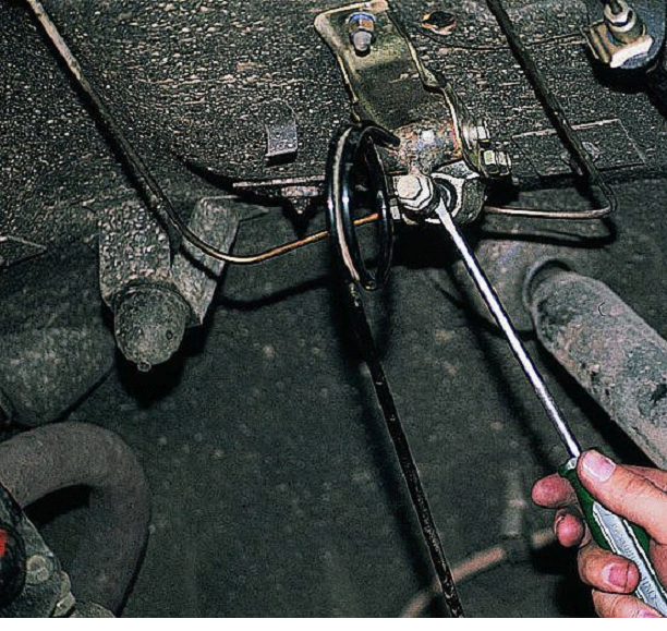 - После того, как педаль оторвется от пола, штуцер закручивают.